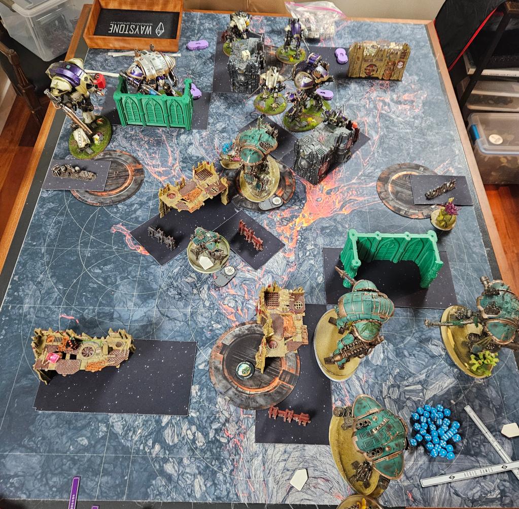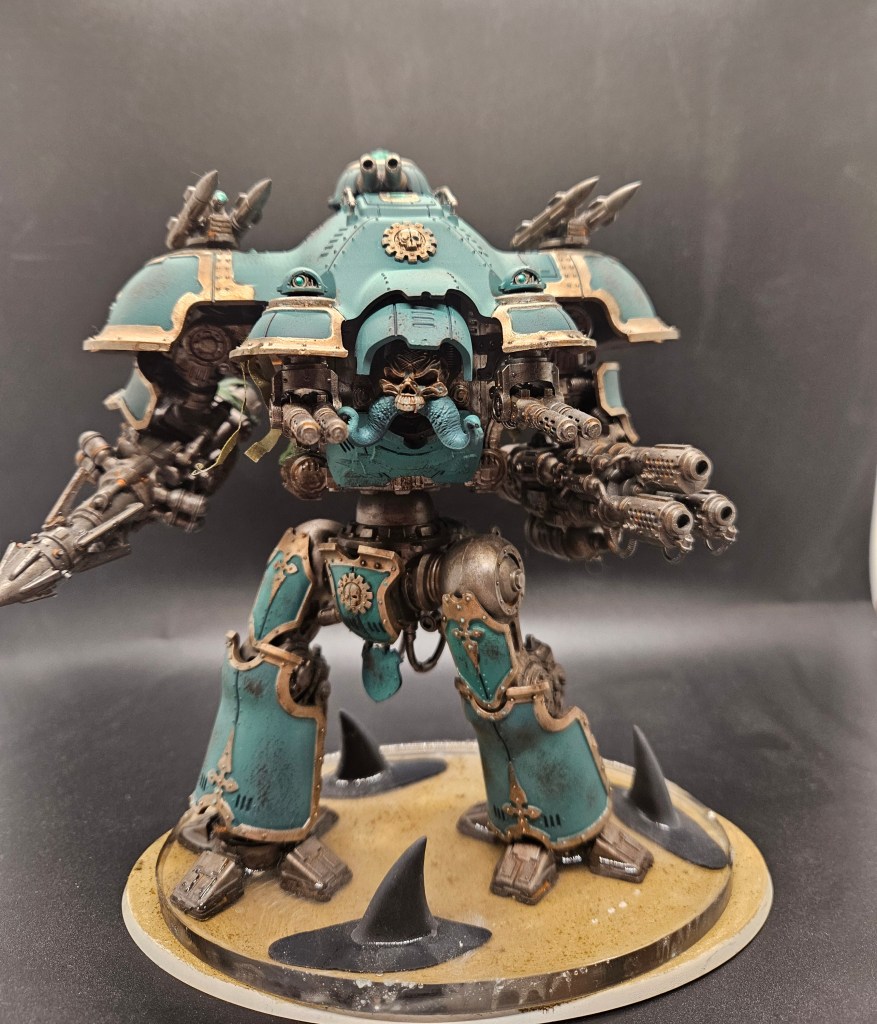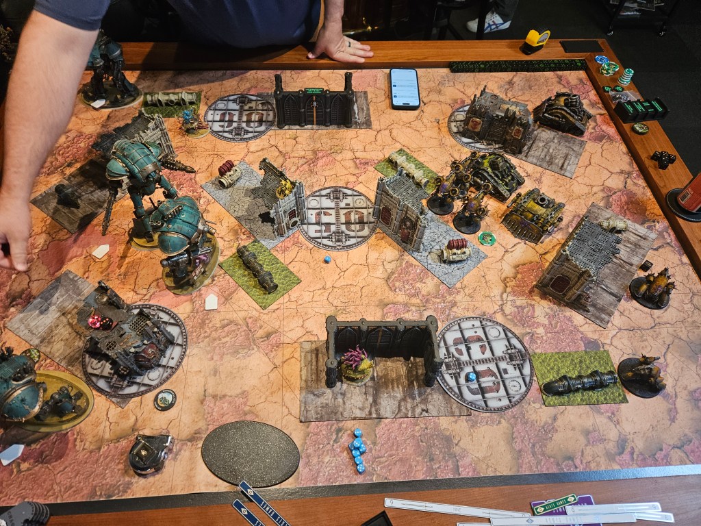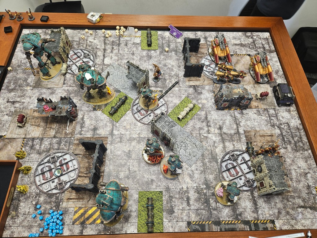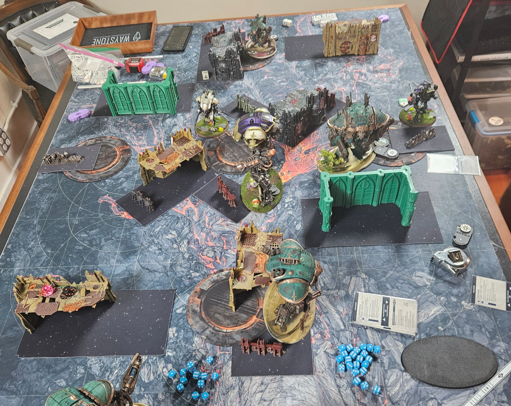 The Tyrant was…good? I think I’d need another game or two with it to really be sure, but it was intended to give Death Guard a hard time and it certainly did. Would it have been better if it was a second Atrapos or just a bunch of war dogs? Hard to say. The -1 to hit really hurts it, but it still is something your opponent has to respect. Any DG players reading this, your takeaway should be that the -1 to hit affliction is the one to go with against knights. Hitting on 4s is really rough, especially on the war dogs. The name of the game against DG is to 1) kill the bloat drones and 2) deal with the lord of virulence. That character with the enhancement is fucked up. Almost doubles the output of the army into a target.
